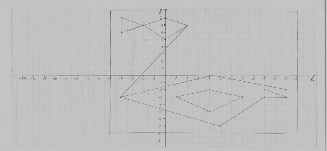 1) (2; - 3), (2; - 2), (4; - 2), (4; - 1), (3; 1), (2; 1), (1; 2), (0; 0), (- 3; 2), (- 4; 5), (0; 8), (2; 7), (6; 7),