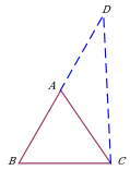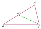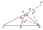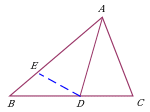 | Откладывание отрезка, равного данному. Дополнительное построение позволяет использовать: равенство треугольников ∆ADE и ∆ADC; свойство внешнего угла AED треугольника ∆BDE. |