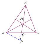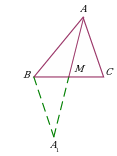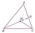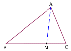 | Проведение отрезка, соединяющего вершину треугольника с некоторой точкой на противоположной стороне. Дополнительное построение позволяет воспользоваться неравенством треугольника для ∆ABM и ∆ACM. |