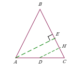 | Проведение высоты к боковой стороне в равнобедренном треугольнике. Дополнительное построение позволяет воспользоваться подобием треугольников ∆AEC и ∆DHC, где DH – средняя линия треугольника ∆AEC. См задачу 2 |