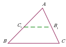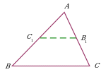 | Проведение прямой через точку в треугольнике, параллельной одной из сторон. Дополнительное построение позволяет использовать подобие треугольников ∆ABC и ∆AC1B1. |