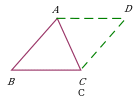 | Проведение прямых, параллельных сторонам треугольника. Дополнительное построение позволяет использовать: равенство треугольников ∆ABC и ∆ADC; равенство площадей треугольников ∆ABC и ∆ADC. |