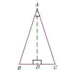 | Проведение биссектрисы, высоты, медианы в равнобедренном треугольнике. Дополнительное построение позволяет использовать равенство треугольников ∆ABD и ∆ACD. |
