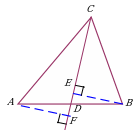 На стороны треугольника опустить перпендикулярные прямые. Дополнительное построение позволяет воспользоваться свойством биссектрисы угла. |