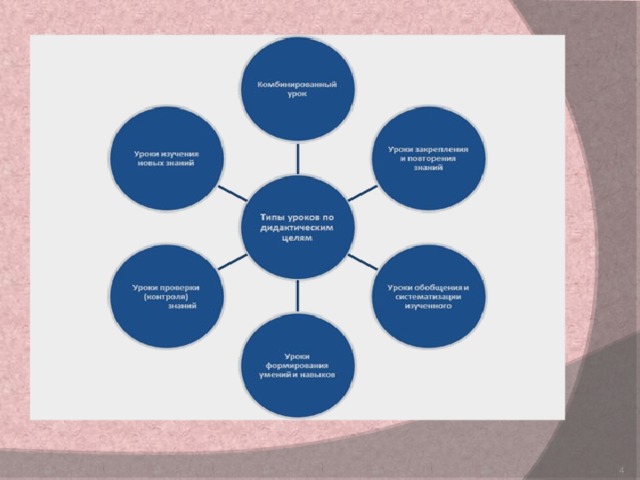 - Вышеназванные типы уроков входят в системы, созданной на основе дидактической (учебной) цели занятий. Классификация уроков по основной дидактической целью является самой удобной для