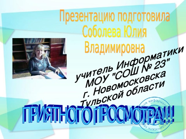 Разработка учителя информатики МОУ «СОШ № 23» г. Новомосковска Тульской области