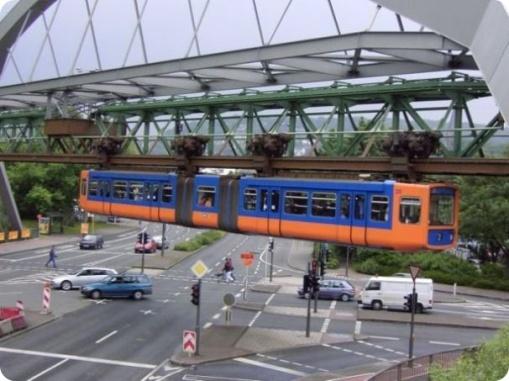 Существует ли поезд, который ездит вверх ногами? У Вас есть возможность увидеть его. Отправляйтесь в Германию. Местное население называют подвесную дорогу плавучим поездом, и является одной из старейших монорельсовых дорог, находящихся в эксплуатации, которая собирает множество любопытных туристов.Проходит висячий поезд приблизительно 13 километров. История возникновения берет свое начало очень давно, 110 лет тому назад. В то время Дороги использовались экипажем и пешеходами, а вот для строительства трамвайных путей просто не было места. Идея с метро также была невозможна из-за скалистой местности и большого количества грунтовых вод. Тогда инженерам пришла в голову мысли проложить трамвайные пути по воздуху. С 1901 года, когда «воздушный» транспорт был открыт для общественности, трамвайная линия стала главной достопримечательностью Вупперталя. Даже по прошествии ста лет она осталась самым быстрым и доступным способом передвижения по городу.