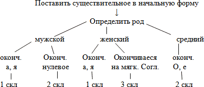 2. Разработать алгоритм для определения склонения существительных
