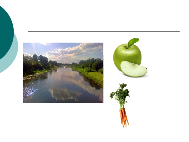 - Яблоко, лимон, слива, вишня, помидор, мандарин, огурец, тыква, морковь, капуста, горох, фасоль.