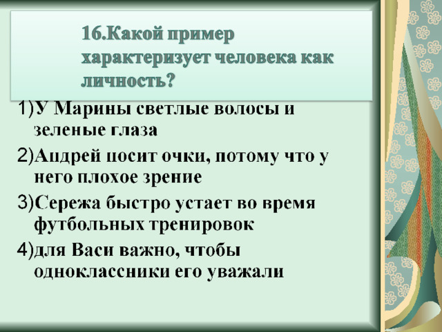 - 1) индивида 2) гражданина 3) личность 4) профессионала