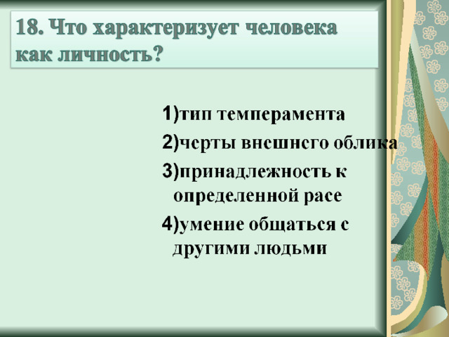 - 1) индивид 2) личность 3) индивидуальность 4) талант
