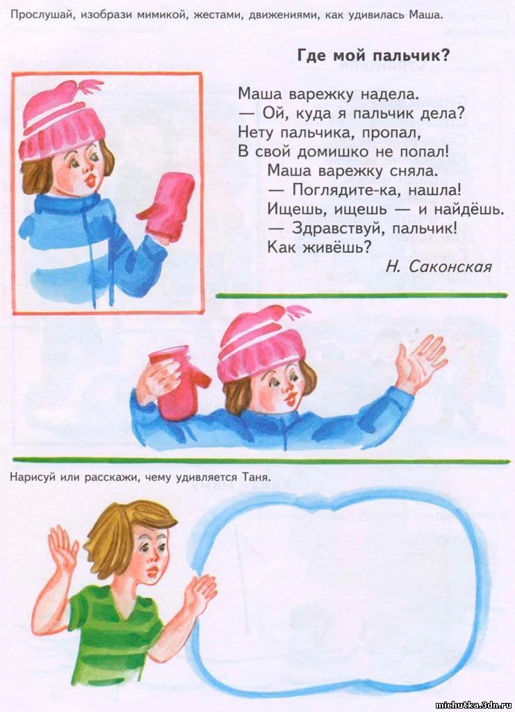 Цель: развивать способность определять базовые эмоции (радость, горе, гнев, страх, удивление) по мимике и передавать их; развивать тактильные ощущения.