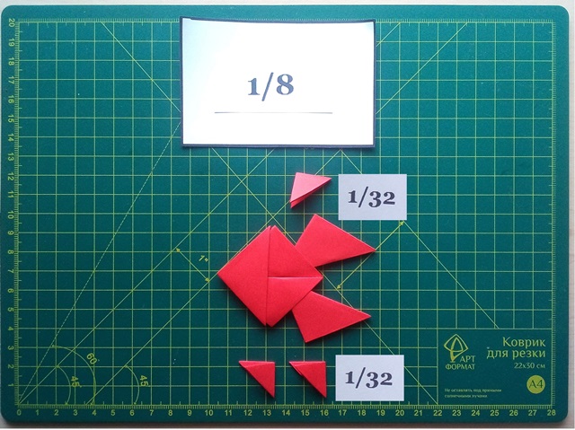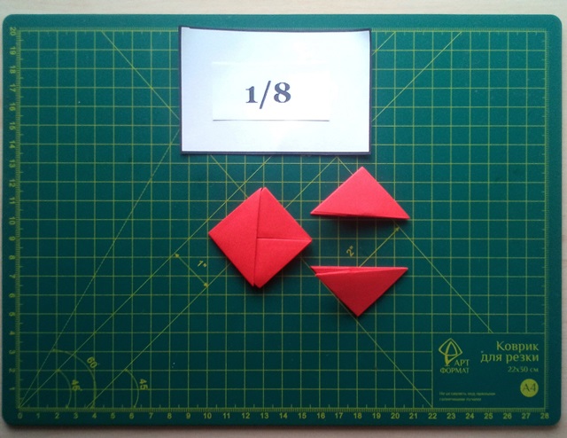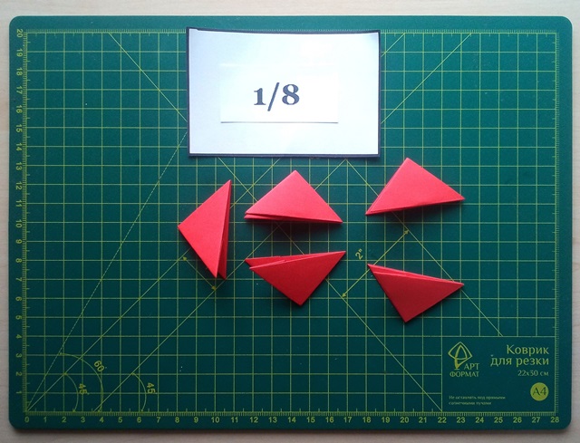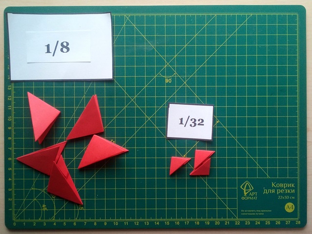 Для ее изготовления нам понадобятся: 5 красных модулей 1/8 (большие), 3 красных модуля 1/32 (маленькие, в 4 раза меньше основных).