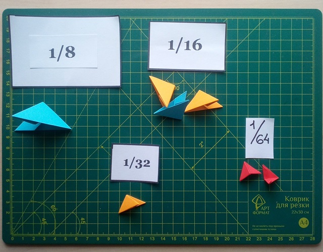 Для ее изготовления нам понадобятся: 1 большой модуль 1/8, 3 средних модуля 1/16, 1 маленький модуль 1/32, 2 очень маленьких модуля 1/64.