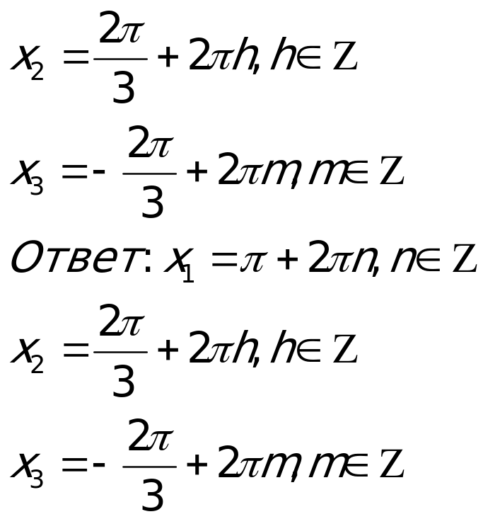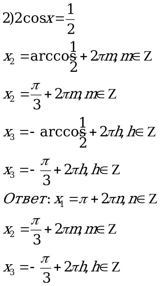есть объединение решений уравнений: cosx= -1 и cosx=