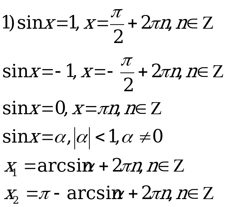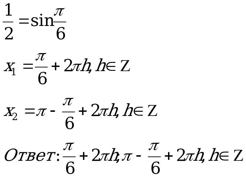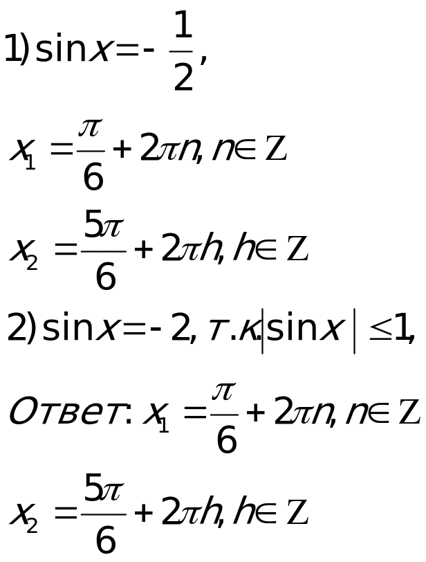 Поэтому множество всех решений уравнения 2sin2x+3sinx-2=0, есть объединение решений уравнений: sinх=