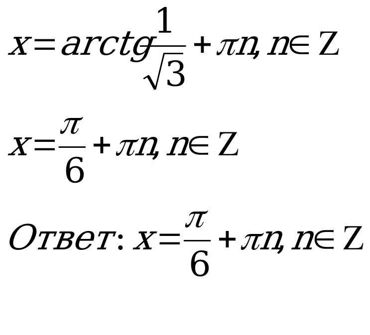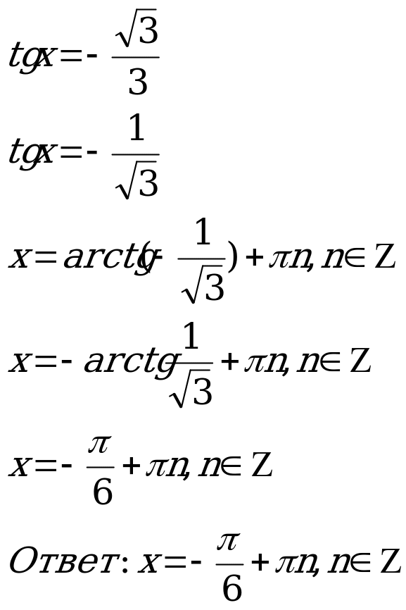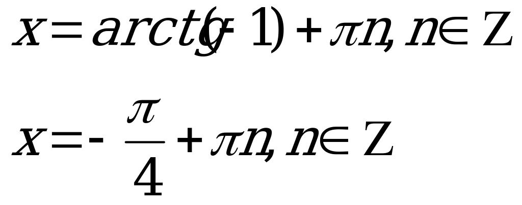 У нас получилось квадратное уравнение относительно tgх. Решив его получаем: