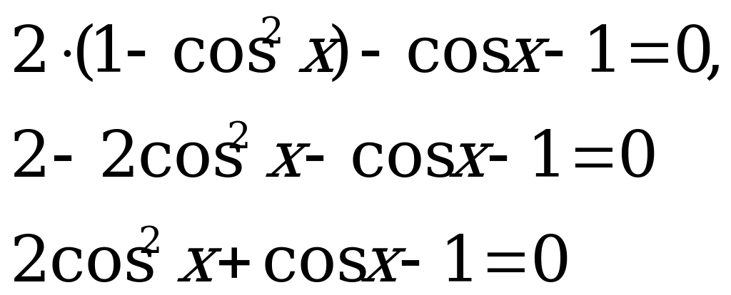 1-cos2x+2cosx-2=0, умножаем обе части уравнения на (-1) и перепишем