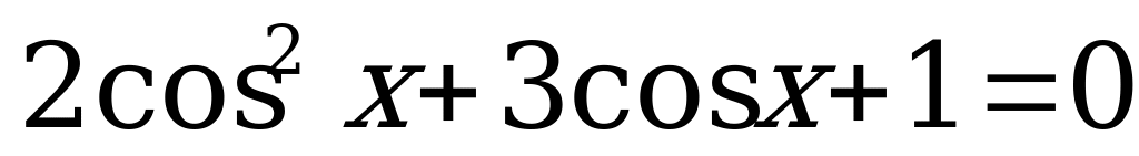 Заменяем cosx= y, получим квадратное уравнение 2у2+у-1=0