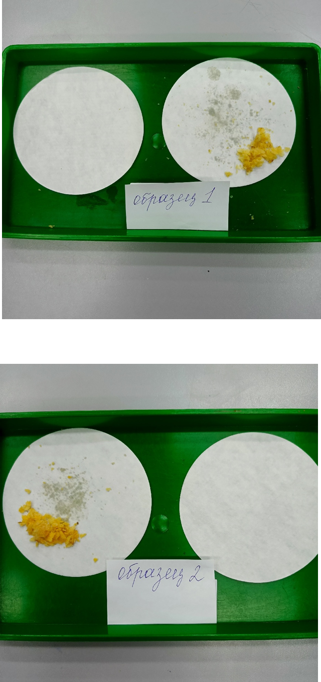 Через 5 минут оценивалось образовавшееся жировое пятно: его размер и степень прозрачности. Большее и более прозрачное пятно указывает на более высокое содержание жира.