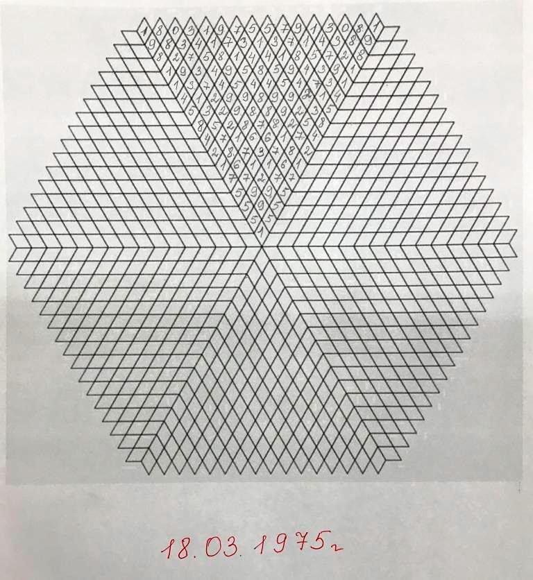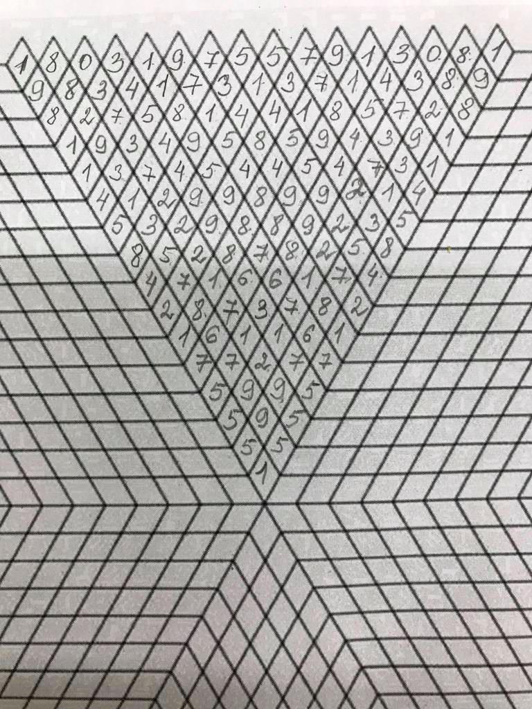 Теперь эту комбинацию необходимо отзеркалить, и мы получим 2 комбинации цифр, которые будут первой строкой перевернутого треугольника: 18031975.57913081