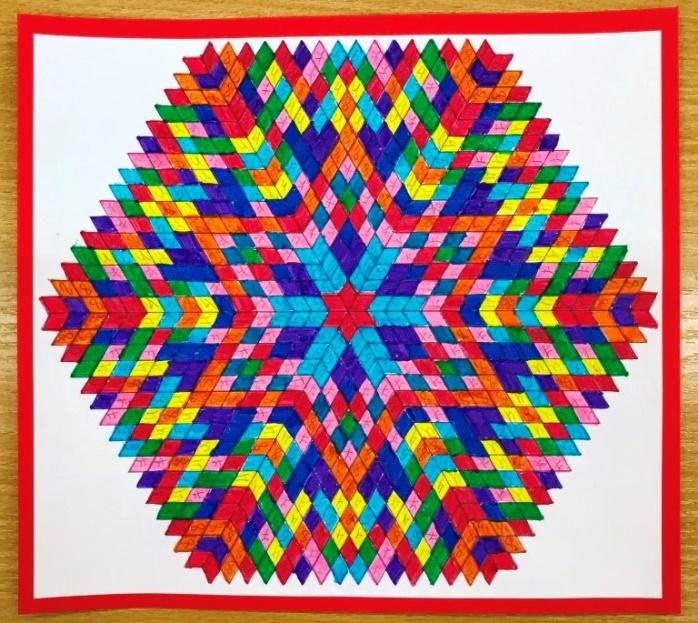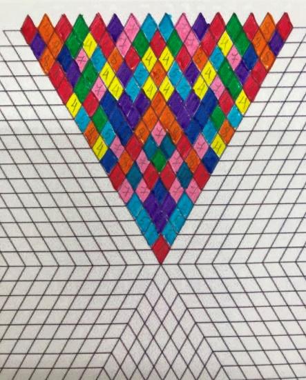 У нас получается треугольник. В соответствии с цифрами закрашиваем каждый треугольник мандалы.
