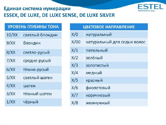 СИСТЕМА НУМЕРАЦИИ КРАСИТЕЛЕЙ ESTEL
