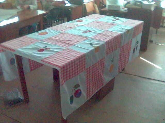 | 5 | Края скатерти подровнять и окантовать тесьмой. (См. фото3) | Швейная машина, утюг, гладильная доска, ножницы |