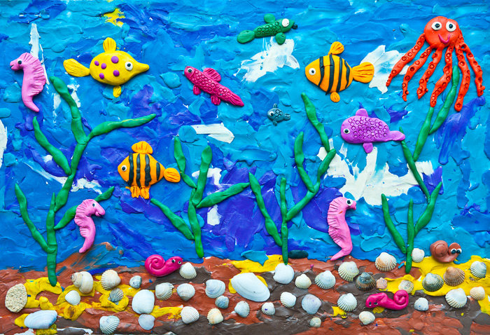 Цель: учиться работать с природными материалами и при помощи них передавать красоту морского дна.