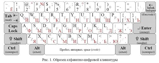 - алфавитно-цифровые клавиши;