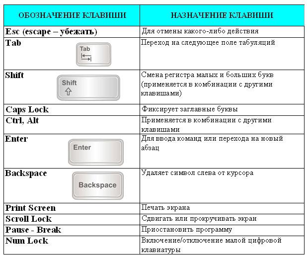 Все клавиши можно условно разделить на несколько групп: