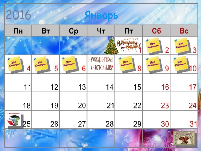 Даты каникул предположительные, можно передвигать картинки.