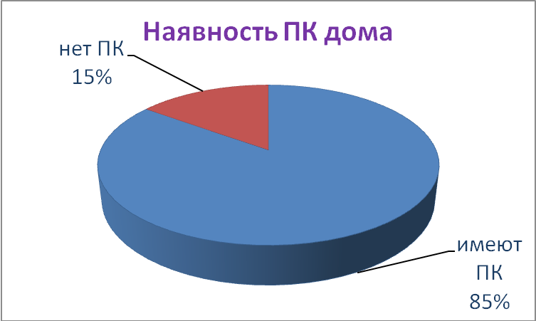 Так, например, мы выяснили, что из 400 опрашиваемых учащихся 340 имеют ПК, что составляет 85%.