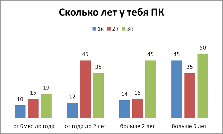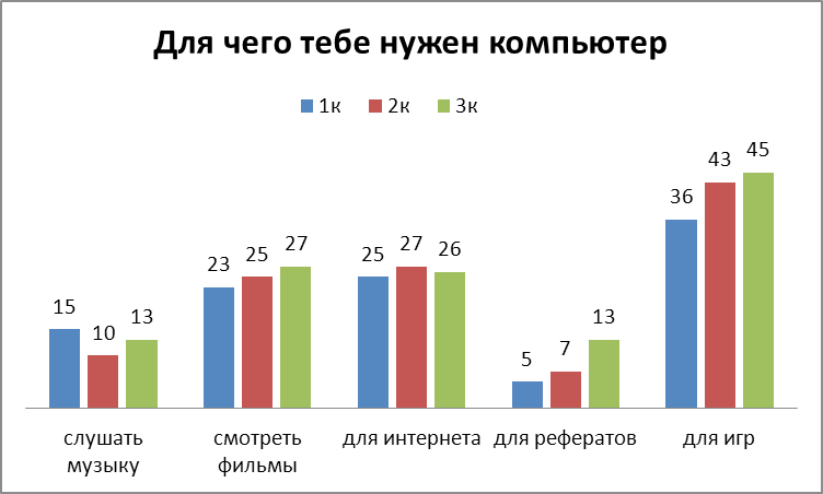 В ходе проведения нашего опроса мы определили цели приобретения компьютера. Полученные результаты мы представили в виде сравнительной диаграммы.