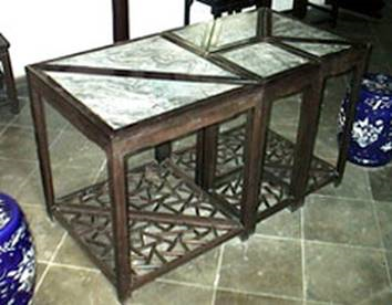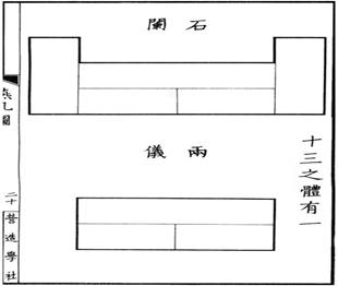 Схема расстановки набора прямоугольных столов на банкете Во время династии Мин (1368–1644) в 1617 году Джи Шан описал расположение на банкете столов треугольной формы. Со временем, в середине династии Цин (1644–1911) столы на банкетах имели форму известных нам ныне семи частей танграма (рис. 2).