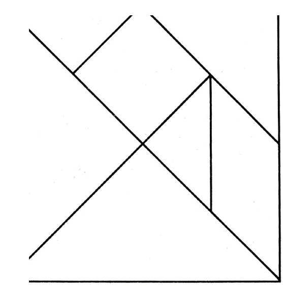 Был описанЛойдом в «Восьмой книге Тан»: Седьмая и восьмая фигуры изображают загадочный квадрат, составленный из семи частей. Затем угол квадрата срезали, но при этом всё равно используются те же семь частей.