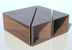 Есть и столы-танграмы, и трансформируемая мягкая мебель, и корпусная мебель. Вся мебель, построенная по принципу танграма, довольно удобна и функциональна. Она может видоизменятся в зависимости от настроения и желания человека. Сколько всевозможных вариантов и комбинаций можно составить из треугольных, квадратных и четырехугольных полок. При покупке такой мебели вместе с инструкцией покупателю выдаются несколько листов с картинками на разные темы, которые можно сложить из этих полок.