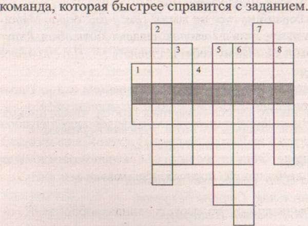 Командам предлагаются одинаковые кроссворды, побеждает команда, которая быстрее справится с заданием.