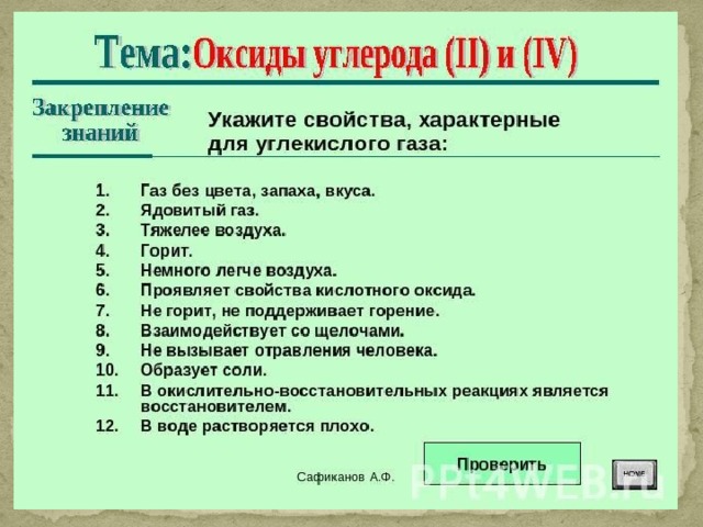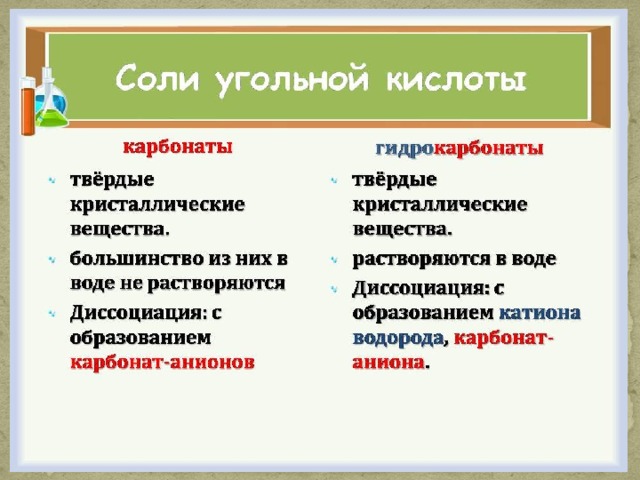 Угольную кислоту формально можно рассматривать как карбоновую кислоту с гидроксильной группой вместо углеводородного остатка. В этом качестве она может образовывать все производные, характерные для карбоновых кислот. Некоторые представители подобных соединений перечислены в таблице. Класс соединений Пример соединения Сложные эфиры поликарбонаты Хлорангидридыфосген Амидымочевина Нитрилыциановая кислота Ангидридыпироугольная кислота