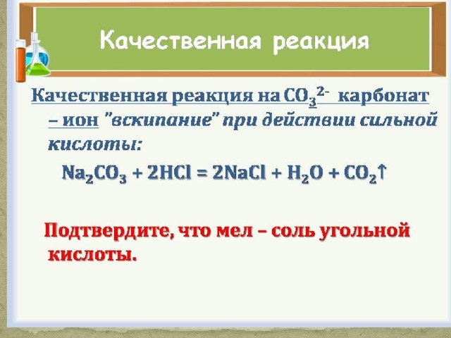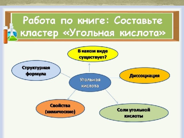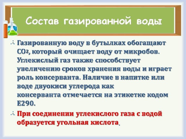 Разложение При повышении температуры раствора и/или понижении парциального давления диоксида углерода равновесие в системе смещается влево, что приводит к разложению части угольной кислоты на воду и диоксид углерода. При кипении раствора угольная кислота разлагается полностью