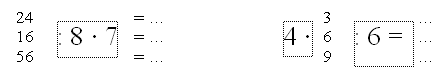 Задание № 6 (1, 2, 3) учитель разбирает вместе с детьми. В задании № 6 (1) прежде чем начертить квадраты, надо узнать их стороны. Дети решают и находят, что 8 : 4 = 2 (см). Это длина стороны первого квадрата. Затем надо найти периметр второго квадрата, а для этого надо 8 · 3 = 24 (см). После этого 24 : 4 = 6 (см) – это длина стороны второго квадрата.