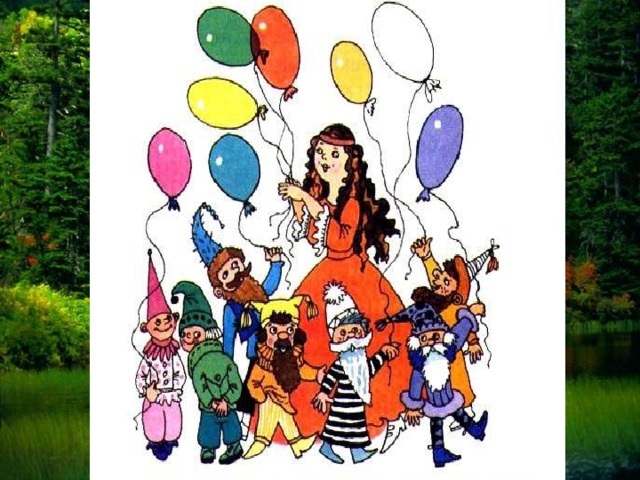 В лесу нас встречают сказочные герои. Откройте учебник на стр. 13. Из какой они сказки? -Хватит ли шариков всем гномам? -Как вы это узнали? Кому взять лишний шарик? -Достаточно ли шариков, чтобы каждый гном получил по 2 шарика? -А теперь шарики я подарю вам.