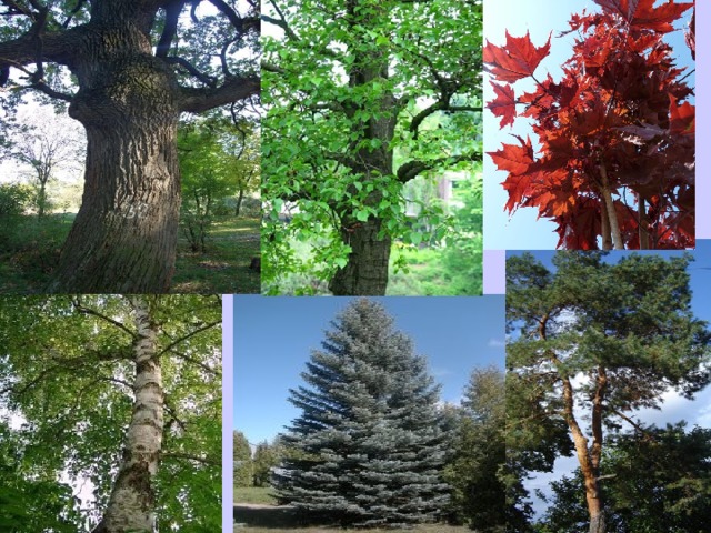 -Назовите деревья, которые вы видите на экране.( дуб, ель, берёза)