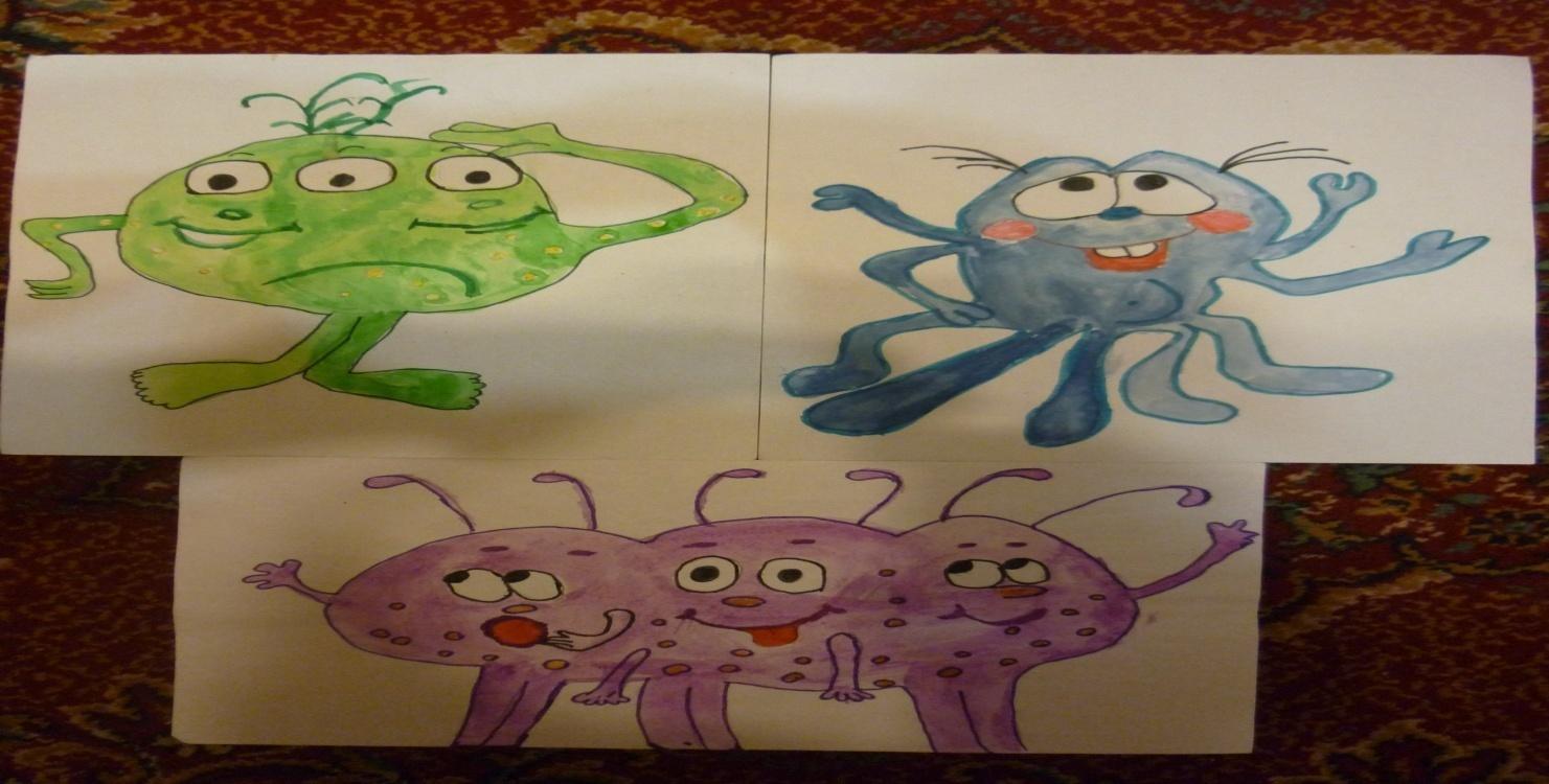 На дошці зображення 3 - х інопланетян. Один із них прибув в Ужгород. Завдання учнів – прослухати опис інопланетянина і назвати, яких саме прибув у наше місто.