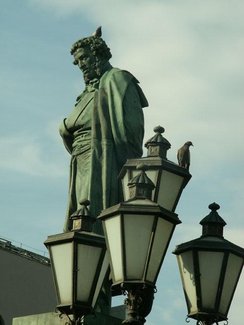 P7:This is the monument to Pushkin which is situated on Tverskaya street.Many people come to this monument to show their love for one of the best Russian poets.