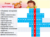 Цель: создав проблемную ситуацию , выйти на тему урока и по ключевым словам определить цели урока | Какое физическое понятие объединяет все вопросы? Сила. Запишем его в тетрадь ,как начальное слово темы урока. А чтобы тема была полной, решите кроссворд, и тема станет известна! 1.Единица измерения силы… 2 3.Одна из характеристик действия силы… 4..Прибор для измерения силы… 5.Причина изменения скорости… 6.Все предметы в физике называются …