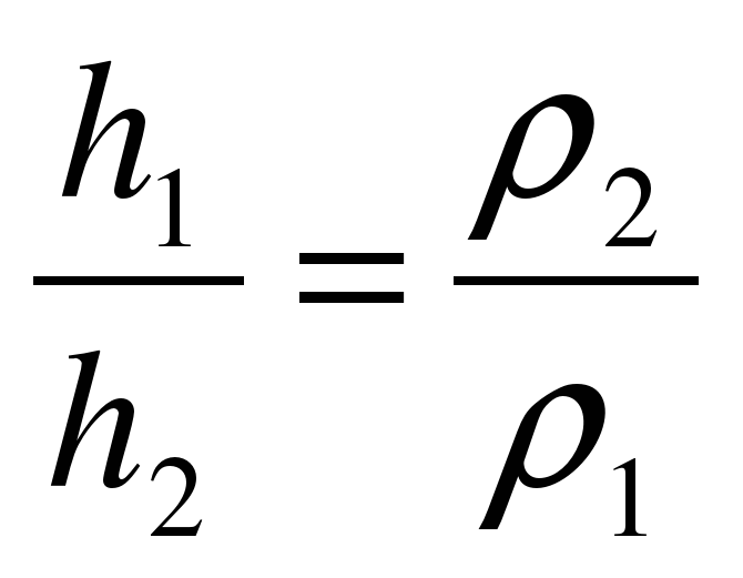 р1= р2, р1 = ρ1 g h1, р2 = ρ2 g h2, ρ1 g h1 = ρ2 g h2,