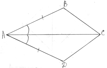 № 11.5 Дано: AB=АD DC=ВС Д-ть: АС - биссетриса D Д-во: Рассмотрим ∆DAC и ∆ BAC . AB=AD, DC=BC- по условию AC-общая = ∆DAC=∆ BAC = = АС-биссектриса D ■