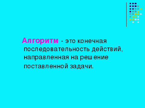 | 7. Изучение нового материала. | | - Итак, напомните определение алгоритма. |  | Отвечают на вопросы, вспоминая материал прошлого урока «Алгоритм, свойства алгоритма, элементы блок-схем». |