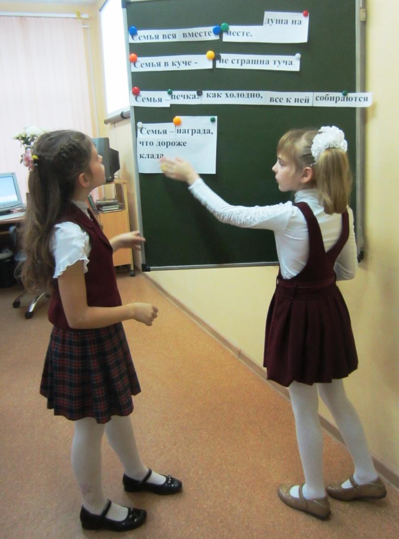 Обобщение и систематизация знаний | Цель: провести обобщение; дать оценку успешности достижения цели и наметить перспективу последующей работы. - Повернитесь друг к другу. Обсудите и сформулируйте условия, при которых жизнь Ваньки улучшится. -Почему жизнь в деревне кажется Ваньке счастливой? - Давайте вспомним народную мудрость по теме урока: Семья в куче - … не страшна туча. Семья вся вместе - … душа на месте. Семья – награда, … что дороже клада. Семья – печка: … как холодно, все к ней собираются. | Организация самостоятельной работы. Работа в парах. |